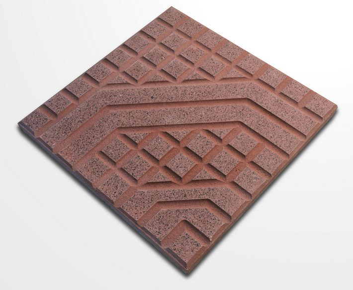 Baldosa Prensada Granatica Pulida fabricada con Cemento, Arena, Marmolina y Piedra Partida. Medidas: 40*40, espesor 2,5cms. Fondos rojo con negro. Ideales para espacios de alto transito como veredas, garages y entradas de auto.