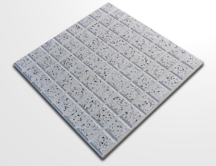 Baldosa Prensada Granítica Pulida fabricada con Cemento, Arena, Marmolina y Piedra Partida. Medidas: 40*40, espesor 3.6 cm. Fondos Blanco con granito negro. Ideales para espacios de alto transito como veredas, garages y entradas de auto.
