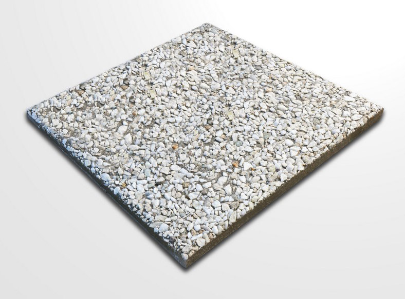 Baldosa Prensada Piedra Lavada Blanca sobre fondo gris, apta para Espacios de Alto Transito. Medida 40x40 cms, espesor 2,8cms.
