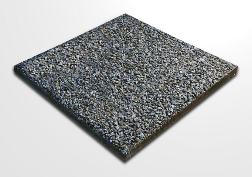 Baldosa Prensada Piedra Lavada gris sobre fondo gris, apta para Espacios de Alto Transito. Medida 40x40 cms, espesor 2,8cms.