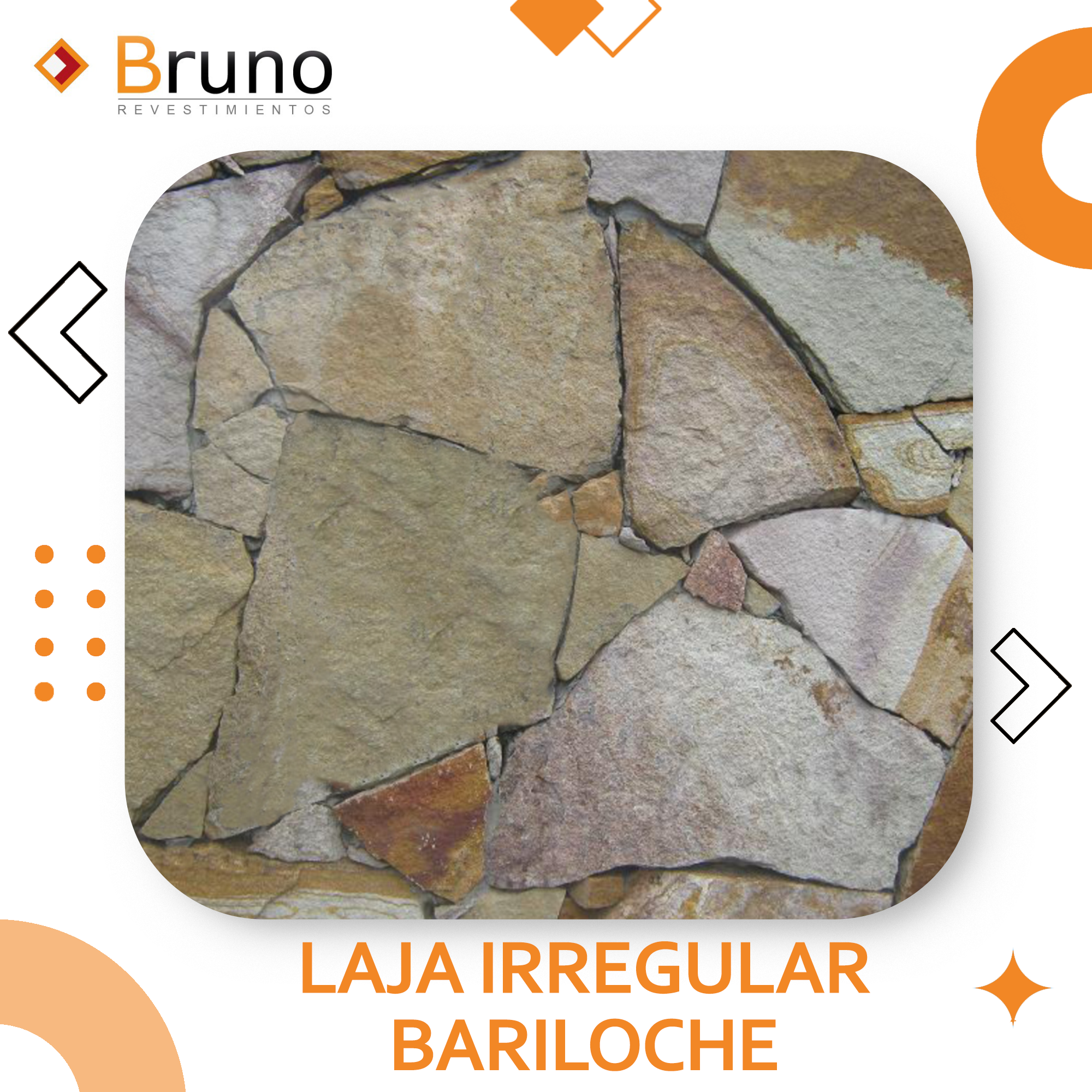 Piedra Laja Bariloche, se utiliza para colocar tanto en interiores como exteriores vienen de 3 a 5 cm de espesor y la tonalidad es una mezcla de Blanco, amarillo, negro y viletas.