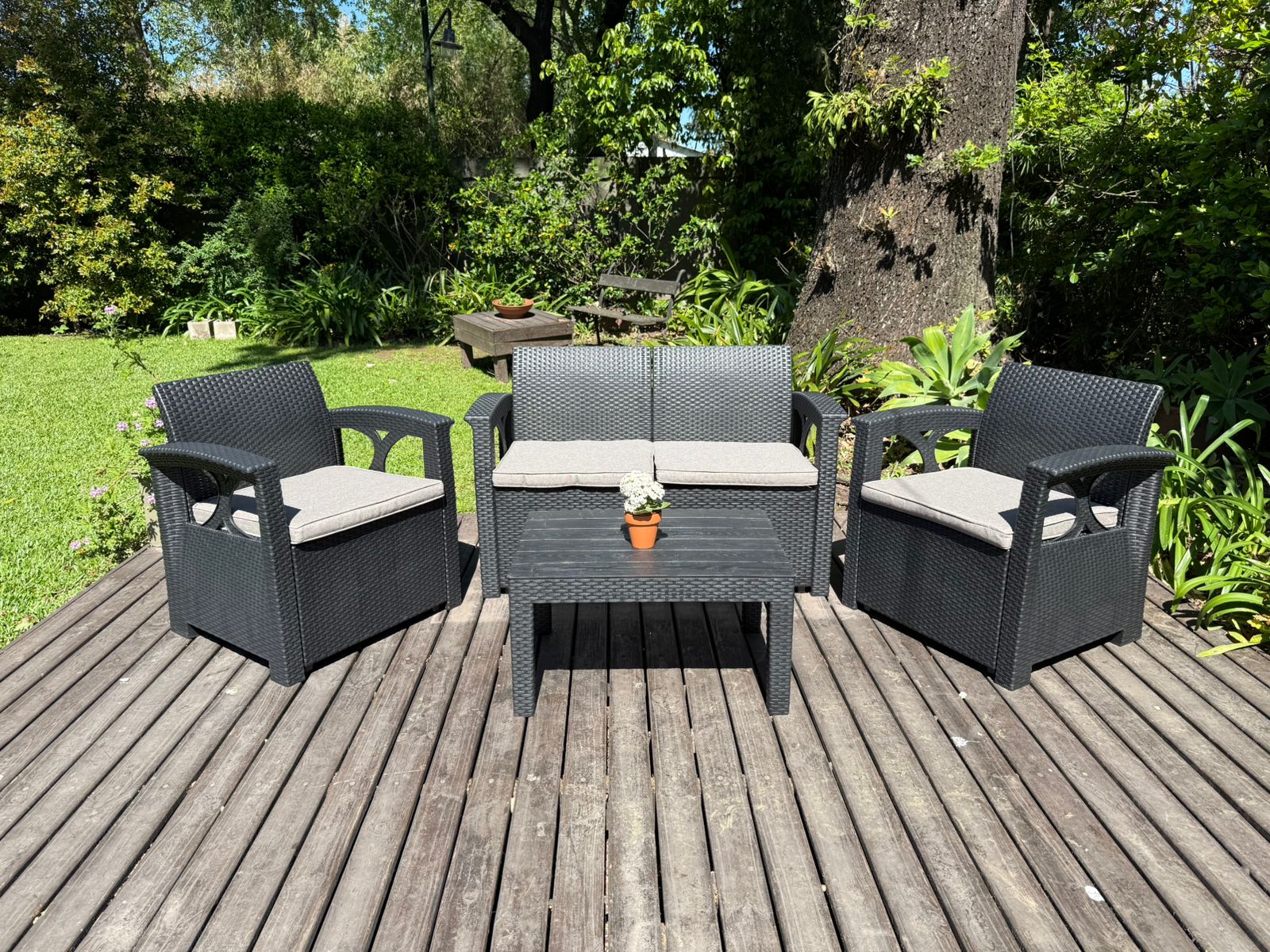 Juego de Living Exterior/Interior – 1 Mesa + 2 Sillones Individuales + 1 Sillón Doble (dos cuerpos)